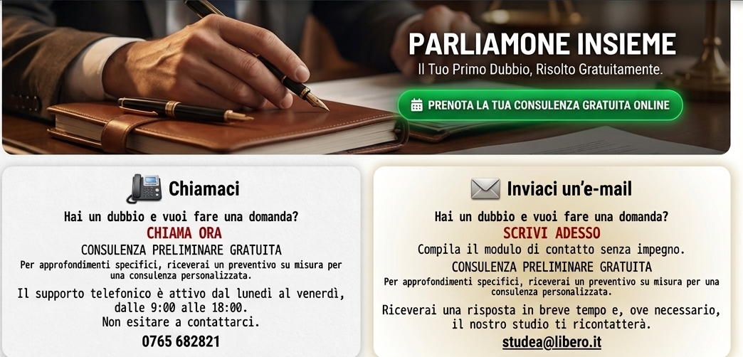 Compila il modulo di contatto senza impegno, riceverai una risposta in breve tempo e ove necessario il ns studio ti ricontatterà.