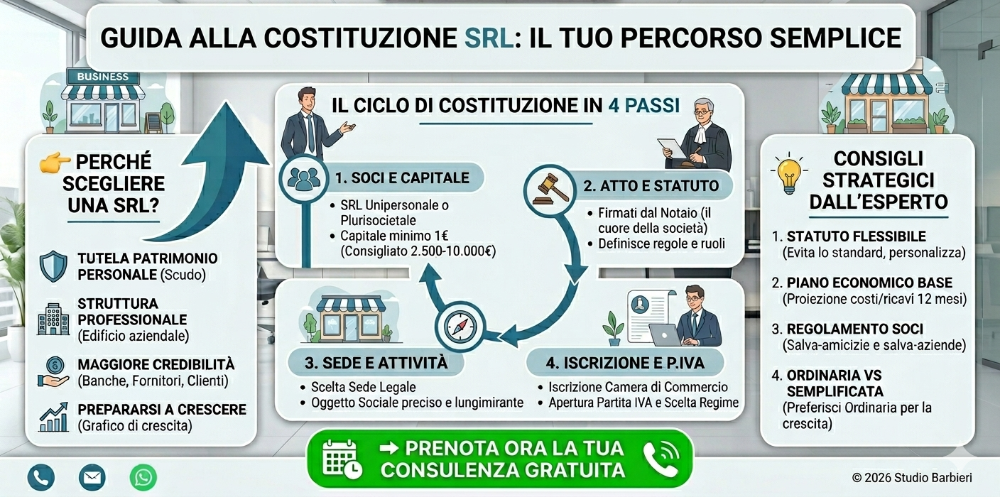 Vuoi trasformare la tua idea imprenditoriale in una realtà solida e professionale? La Società a Responsabilità Limitata (SRL) è una delle forme societarie più diffuse e vantaggiose in Italia, ma il percorso di costituzione richiede attenzione, precisione e una visione strategica fin dal primo giorno.